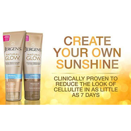 About This Item We aim to show you accurate product information. Manufacturers, suppliers and others provide what you see here, and we have not verified it. See our disclaimer Giving your skin a flawless, natural-looking glow can be as easy as applying your daily body moisturizer. Jergens Natural Glow Daily Moisturizer for Body gradually delivers subtle color even when the beach is miles (or months) away. Applying at least once a day will enhance your natural skin tone within several days, and in about one week, you’ll have beautiful, natural-looking color. Jergens Natural Glow Daily Moisturizer for Body also contains a blend of hydrating ingredients, antioxidants, and Vitamin E, so your skin stays nourished while getting its glow on. Reduces the appearance of cellulite in as little as 7 days Gradually creates flawless, natural looking color Medium to tan skin tones
