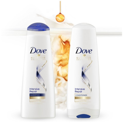 About This Item We aim to show you accurate product information. Manufacturers, suppliers and others provide what you see here, and we have not verified it. See our disclaimer Looking for an effective shampoo and conditioner for damaged hair? From styling to changes in the weather, our hair goes through a lot every day - but with the right hair care products you can have nourished hair, inside and out. We've created Dove Nutritive Solutions Intensive Repair Shampoo and Conditioner to smooth, visibly repair damage, strengthen against breakage and progressively nourish with continued use to help give you hair that feels as good as it looks. Even the most damaged hair can look healthy day after day. We know that damaged hair care should go beyond removing the outward signs of damage, which is why this Dove shampoo and conditioner is formulated to nourish and help restore the hair inside as well. Formulated with Keratin Repair Actives, Dove Nutritive Solutions Intensive Repair Shampoo and Conditioner repair the signs of damage to the hair surface and, with continued use, penetrate the hair strands to progressively nourish, making hair stronger against breakage, beautiful and visibly healthier with every wash. How to use: Help nourish and restore your hair with Dove Nutritive Solutions Intensive Repair Conditioner. For a boost of nourishment, apply to clean, wet hair and massage into mid-lengths and ends, and then rinse well. Note: For best results, use after cleansing with Dove Nutritive Solutions Intensive Repair Shampoo. Dove Nutritive Solutions Intensive Repair, Shampoo & Conditioner Nutri-Keratin Repair Actives help repair damage deep inside hair Visibly repairs signs of surface hair damage Deeply nourishes damaged hair Makes hair feel smoother, helps detangling and improves manageability Gives both instant and progressive results with continuous use Suitable for daily use