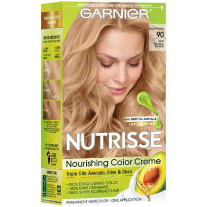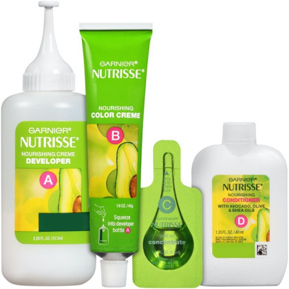 About This Item We aim to show you accurate product information. Manufacturers, suppliers and others provide what you see here, and we have not verified it. See our disclaimer Garnier® Nutrisse® Nourishing Hair Color Creme Garnier Nutrisse hair color creme nourishes while you color with avocado, olive, and shea oils. The nourishing color creme enriched with fruit oil concentrate, penetrates deep into hair fibers to nourish and condition your hair so it takes color better and holds it longer, root-to-tip. Garnier Nutrisse delivers rich, radiant, long-lasting hair color with 100% grey coverage. Permanent, nourishing hair color creme with three fruit oils- avocado, olive, and shea The only hair color creme with a separate ampoule of grape seed oil to start nourishing as you color Rich, radiant, long-lasting color with 100 percent grey coverage Available in 45 Nourishing Shades