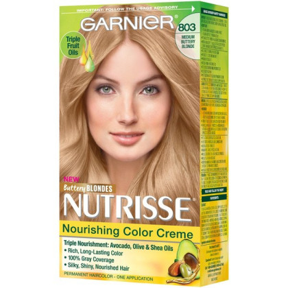 About This Item We aim to show you accurate product information. Manufacturers, suppliers and others provide what you see here, and we have not verified it. See our disclaimer Garnier® Nutrisse® Nourishing Hair Color Creme Garnier Nutrisse hair color creme nourishes while you color with avocado, olive, and shea oils. The nourishing color creme enriched with fruit oil concentrate, penetrates deep into hair fibers to nourish and condition your hair so it takes color better and holds it longer, root-to-tip. Garnier Nutrisse delivers rich, radiant, long-lasting hair color with 100% grey coverage. Permanent, nourishing hair color creme with three fruit oils- avocado, olive, and shea The only hair color creme with a separate ampoule of grape seed oil to start nourishing as you color Rich, radiant, long-lasting color with 100 percent grey coverage Available in 45 Nourishing Shades