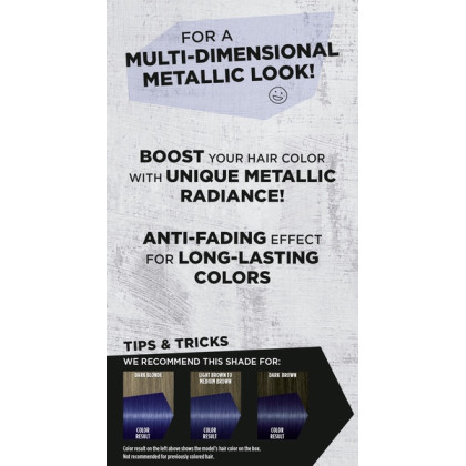 About This Item We aim to show you accurate product information. Manufacturers, suppliers and others provide what you see here, and we have not verified it. See our disclaimer Say goodbye to boring colors! All eyes are on you with got2b Metallics permanent color. Boost your hair color with trendy metallic shades. Gilded Rose M79 offers a multi-dimensional look that delivers unique metallic radiance. For a multi-dimensional metallic look! Head-turning radiance and anti-fading effect for permanent hair dye that lasts. Formulated with metallicshine booster for cool, shimmering tones. In the box: 1 tube color cream, 1 application bottle with developer lotion, 1 tube color after treatment, 1 pair of gloves, and 1 instruction leaflet. If your hair is longer than shoulder length, we recommend using 2 boxes of got2b Metallic for the application.