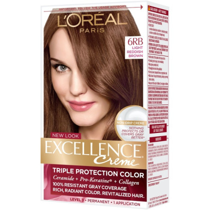 About This Item We aim to show you accurate product information. Manufacturers, suppliers and others provide what you see here, and we have not verified it. See our disclaimer L'Oreal Paris Excellence Creme Permanent Hair Color There's a reason it's called Excellence. L'Oreal Excellence hair color is designed with an exclusive triple protection system that deeply cares for your hair, and with 100% gray hair coverage even on stubborn grays. The color creme is formulated with Pro-Keratine complex that protects as it colors. This hair dye kit is available in a color palette ranging from Ash Blonde to Chocolate Brown to Jet Black. Absolutely gorgeous at home hair color. No permanent hair color protects better or covers grays better (compared to each leading competitor's top selling brand). 100 percent gray coverage even on stubborn grays Triple protection system protects before, during and after coloring Pre-color treatment protects and primes hair Rich, radiant color
