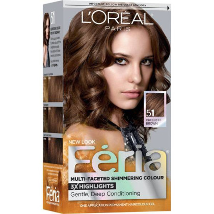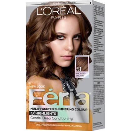 About This Item We aim to show you accurate product information. Manufacturers, suppliers and others provide what you see here, and we have not verified it. See our disclaimer With L'Oreal Feria, what you see is the shimmer. Multi-Faceted shimmering color with 3X highlights delivers intensified, brilliant results. Inspired by fashion, Feria offers a twist on the traditional and gives edgy hair color - from bright red, platinum blonde, rose gold, metallic brown, to blue black hair color, these hair dye kits will transform your hair. Feria's prismatic color spectrum is custom-blended by L'Oreal master colorists for bold, head-turning shades – no appointment necessary. The Power Shimmer Conditioner seals and smooths. Won't wreck or ravage hair. Packaging may vary, what you receive may not be what is reflected on site. L’Oreal Paris Feria Multi-Faceted Shimmering Color with 3X the highlights delivers intensified, brilliant results Never leaves hair dull or flat Seals and smooths hair, never wrecks or ravages hair Delivers trendy, edgy, shimmering, fashionable and multi-tonal hair colors