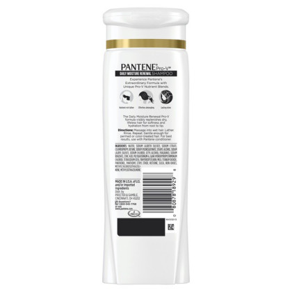 About This Item We aim to show you accurate product information. Manufacturers, suppliers and others provide what you see here, and we have not verified it. See our disclaimer Pantene Pro-V Daily Moisture Renewal Shampoo puts in more than it takes out with every wash. With a potent blend of Pro-V nutrients, Daily Moisture Renewal Shampoo gently cleanses your hair with a nutrient-rich lather that wraps every strand with strength. The Pro-V formula delivers 2X moisture,* so you’re left with intensely hydrated, strong and beautiful hair. Renew your hair with Pantene Pro-V Daily Moisture Renewal Conditioner. Featuring a potent blend of Pro-V nutrients, this luxurious cream helps to visibly replenish dry, lifeless hair from root to tip. Micro-moisturizers work to wrap every strand with lasting hydration, leaving your hair with 2X more moisture.* The result? Beautifully soft, manageable strands. *when used as a system with Daily Moisture Renewal Conditioner based on moisturized feel vs. non-conditioning shampoo. Pantene Pro-V Daily Moisture Renewal Shampoo and Conditioner Bundle: You will receive one 12.6 fluid ounce bottle of Shampoo and one 12 fluid ounce bottle of Conditioner Daily Moisture Renewal Shampoo and Conditioner nourish hair with a potent blend of Pro-V nutrients and antioxidants so hair is strong against damage Shampoo gently cleanses hair with a nutrient-rich lather that wraps every strand for effortless detangling Powerful Pro-V formula deeply hydrates and nourishes hair