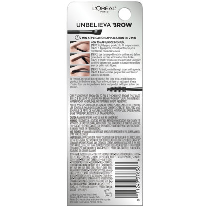 About This Item We aim to show you accurate product information. Manufacturers, suppliers and others provide what you see here, and we have not verified it. See our disclaimer Brows for days. Enhanced up to 48 hours. Unbelieva-brow, L’Oreal Paris’ first longwear brow gel, fills and thickens for brows that last. Build and sculpt your dream brow from natural to intense. Formulated with longwear polymers that create a waterproof film to seal in pigments onto brow hair and spherical silica for natural looking color. Waterproof. No smudge. No transfer. Sweat-Resistant. 93% of women agreed it has good wear.* 82% agreed it resists a workout.* **In a consumer test Unbelieva-Brow longwear brow gel to fill and thicken brows that last Longwear brow gel to fill and thicken brows that last , experience brows for days, enhanced up to 48 hours Waterproof, no smudge, no transfer, sweat resistant Achieves a natural brow look that helps outline and define brow shape