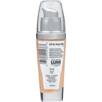About This Item We aim to show you accurate product information. Manufacturers, suppliers and others provide what you see here, and we have not verified it. See our disclaimer L'Oréal® Paris True Match™ Lumi Healthy Luminous Makeup Finally, makeup that creates skin so healthy – it's luminous! L'Oréal Paris True Match Lumi Healthy Luminous Makeup® combines 3 powerful ingredients that work to improve your complexion the more you wear them. The liquid foundation contains 40% pure water for all-day hydration, Antioxidants, and Vitamins C and E for improved clarity and skin tone. Liquid Light technology is infused in the formula for an instant luminous glow. Skin is instantly illuminated and in 1 month, skin is clearer, healthier and more luminous. Lumi Foundation with SPF 20 protects your skin while providing medium coverage and a luminous finish. Available in 15 shades to match your skin's tone and undertone in warm, neutral and cool. Finish: Luminous Finish. SPF: 19. Coverage: Medium Coverage Foundation. Skin Type: For all skin types. Safe for sensitive skin. Available 12 true-to-skin shades in warms, neutrals, and cools. Luminous Liquid Makeup Instantly Illuminates Skin In 1 Month, Skin's Clearer, More Even Anti-oxidants Vitamin C plus E