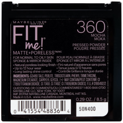 About This Item We aim to show you accurate product information. Manufacturers, suppliers and others provide what you see here, and we have not verified it. See our disclaimer Ideal for normal to oily skin, this matte face powder visibly reduces the look of pores and mattifies shine, while effortlessly blending with the skin. The Fit Me Perlite Mineral technology absorbs oil to mattify skin, while pores virtually disappear thanks to blurring micro-powders. Dermatologist tested. Allergy tested. Non-comedogenic. Ideal for normal to oily skin. Packaging May Vary Reduce the look of pores and mattify shine Buildable coverage that you can customize Matte poreless powder ideal for normal to oily skin Can be worn alone or on top of foundation to set makeup Non-comedogenic and is dermatologist and allergy tested