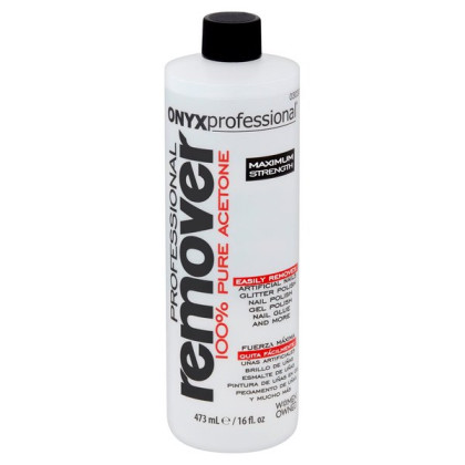About This Item We aim to show you accurate product information. Manufacturers, suppliers and others provide what you see here, and we have not verified it. See our disclaimer Clean up and be ready for a new look with ONYX Professional 100% Pure Acetone Nail Polish Remover. It features maximum strength for faster and more efficient work. This acetone nail remover is ideal for removing various types of nail polish. It can also take off fake nails, nail glue and more. This polish remover is made from 100 percent acetone. It is professionally formulated to be of nail salon quality. It is even effective at removing gel and glitter polishes. Use it to peel away each coat so you can put on a different polish afterward. ONYX Professional 100% Pure Acetone Nail Polish Remover: Maximum strength Fast and efficient Good for various types of polish Can remove gel polish, glitter polish, fake nails, nail glue and more Pure 100% acetone nail polish remover Professional formula Nail salon quality Remove your polish to put a new coat on for a different look