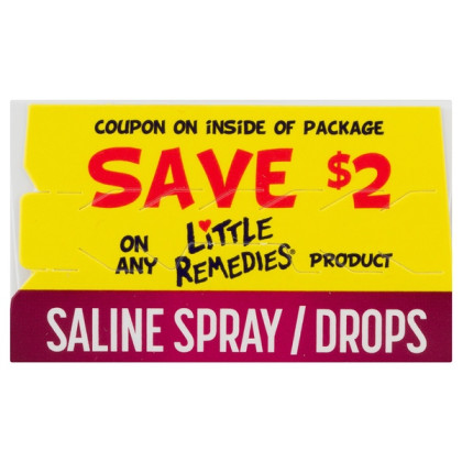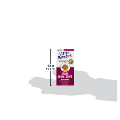 About This Item We aim to show you accurate product information. Manufacturers, suppliers and others provide what you see here, and we have not verified it. See our disclaimer - #1 Pediatrician Recommended; unique design can be held downward as a saline dropper or upright as a saline spray - Relieves runny, stuffy, dry, or crusty noses - Flushes and removes mucus from little noses to help little ones breathe easy; non-medicated relief that safely soothes and moisturizes - Safe for newborns; drug-free, no side effects; use as often as necessary to keep baby's nose clear and moisturized - 1 FL OZ When stuffy noses cause breathing discomfort for your baby, Little Remedies Saline Spray and Drops provide safe relief. This product helps loosen mucus secretions to aid removal from the nose and help little ones breathe easy. It is non-medicated and can be used as often as needed without the worry of any harmful side effects or drug interactions. As a parent, it's the little things that matter. Your baby's little giggles, little steps, and little sniffles. Being there with a little hug and a little song. Loving touches and attention to detail go into everything you do. Little things matter to us too. Little Remedies designs safe and reliable solutions just for babies. We pay attention to little details, like ensuring our products are free from parabens, artificial flavors, and dyes. To help your baby stay happy and healthy, we make sure they have everything they need. And nothing they don't.