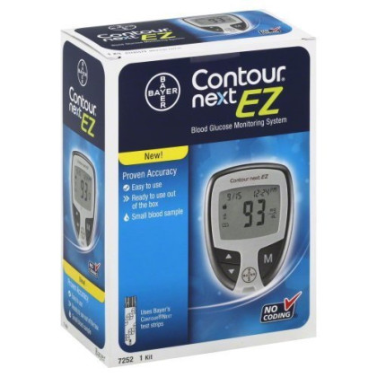 About This Item We aim to show you accurate product information. Manufacturers, suppliers and others provide what you see here, and we have not verified it. See our disclaimer Keep an eye on your levels using the Bayer Contour Next EZ 7252 Blood Glucose Monitoring System. It is ready to use right out of the box and also comes with a carrying case. Designed for self-testing and monitoring, it gives accurate readings using the included lancing device and microlet colored lancets. Keep track of your levels in the logbook. The Bayer blood glucose monitor only takes a small sample and has settings you can personalize to fit your preferences. Blood Glucose Monitoring System 7252. Proven accuracy. Easy to use. Ready to use out of the box. Small blood sample. Uses Bayer's Contour Next test strips. No coding. Simple to use: No Coding technology. Small blood sample - 0.6 ml. Fast 5-second countdown. Personalized settings: optional advanced features. Pre - and post-meal markers with adjustable testing alarms. Can be used with Bayer's diabetes management software. For self-testing, monitoring and management of blood glucose. In this kit you will find: Contour Next EZ Blood Glucose Meter; User guide and quick reference guide; Bayer's Microlet 2 lancing device; 10 Microlet colored lancets; Log book and carrying case. Contour Next control solutions (required to run a quality control check) are sold separately. Contour Next test strips (required to run a blood glucose test) are sold separately. Visit ContourChoice.com for savings, support, special offers, and more. 5 year limited warranty. Bayer HealthCare LLC is dedicated to providing the highest quality products and services to our customers. www.bayercontour.com. For sale in United States only. Meter made in Japan.