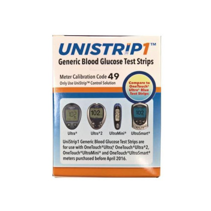 About This Item We aim to show you accurate product information. Manufacturers, suppliers and others provide what you see here, and we have not verified it. See our disclaimer UniStrip 1 Blood Glucose Test Strips are designed to work with the OneTouch Ultra, OneTouch Ultra 2, OneTouch UltraSmart, and OneTouch UltraMini blood glucose meters. UniStrip test strips are FDA approved for use with these meters and can be used for alternate site testing of fresh, capillary whole blood samples from the fingertips, forearms, and palms. These test strips are an excellent option for customers paying for test strips out of pocket or that have high deductibles. UniStrip test strips come in boxes of 50.