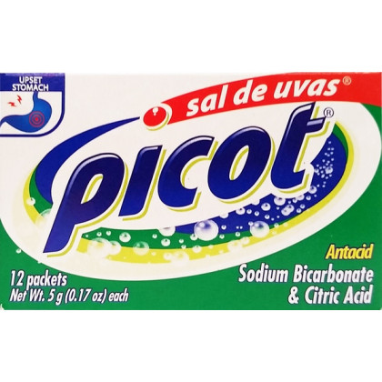 About This Item We aim to show you accurate product information. Manufacturers, suppliers and others provide what you see here, and we have not verified it. See our disclaimer If you suffer from acid indigestion, heartburn or sour stomach, Pico Antacid is an effective treatment that helps to relieve symptoms within a short period of time. This treatment contains sodium bicarbonate and citric acid, two powerful ingredients that work together to neutralize excess stomach acids that can build up after overeating or consumption of spicy or acidic foods. Each pack contains a single dosage of effervescent powder that is easy on the stomach and works to eliminate discomfort. To use, simply pour the contents of the packet into a 4 ounce glass of water. Allow the powder to fizzle and dissolve in the water and drink the entire contents of the glass. Within a short period of time, the powder will begin to balance out the excess levels of stomach acids, allowing for symptoms of heartburn, sour stomach and acidity to subside. This treatment can also help individuals who suffer from gas and bloating due to overeating. Pico Antacid effervescent powder works best when taken immediately following the onset of uncomfortable symptoms. Picot Antacid, Picot, Antacid, Sal de Uvas Antiacido, Sal de Uvas, Antiacido, Sal de Uvas Antiacido Picot, Antacid Picot, Picot Antiacido Sal de Uvas, Sal de Uvas Antacid Picot