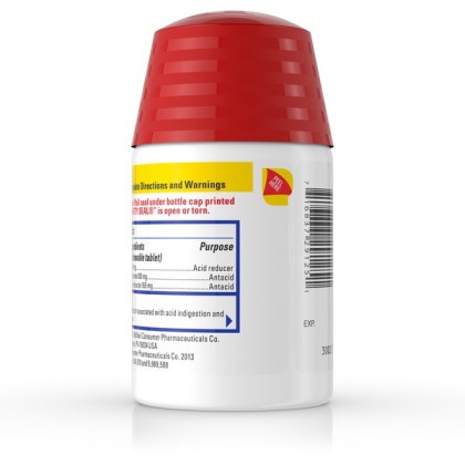 About This Item We aim to show you accurate product information. Manufacturers, suppliers and others provide what you see here, and we have not verified it. See our disclaimer Quickly relieve heartburn associated with acid indigestion and sour stomach with Pepcid Complete Acid Reducer + Antacid Chewable Tablets. These berry- flavored chewable tablets combine a fast-working antacid and long-lasting acid reducer to help control acid all day and night.* Formulated with calcium carbonate, famotidine, and magnesium hydroxide, this heartburn reliever helps to neutralize and control acid. The dual-action formula starts working in seconds and lasts longer than Tums.** Whether at brunch or a new food spot, use Pepcid Complete for fast-acting relief so you don't have to worry about hurting now or hurting later. * Based on 9-hour acid control studies during the day and 12-hour acid control studies during the night. Acid control does not imply symptom relief.** Tums is a registered trademark of GlaxoSmithKline. 25-ct. bottle of Pepcid Complete Acid Reducer + Antacid Chewable Tablets in Berry flavor Acid controller helps relieve heartburn due to acid indigestion and sour stomach 1 tablet controls acid all day & night based on results of 9-hr daytime & 12-hr nighttime studies Contains 10 milligrams of famotidine, a known ingredient that acts as an acid reducer Also contains 400mg calcium carbonate and 165mg magnesium hydroxide, both antacids Dual-action formula starts relieving indigestion in seconds for heartburn relief that lasts These chewable berry-flavored tablets help neutralize and control acid for fast relief Keep a bottle of the antacids at home and in the office to relieve heartburn whenever it strikes