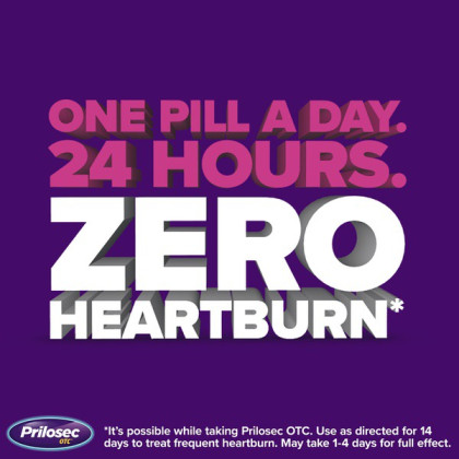 About This Item We aim to show you accurate product information. Manufacturers, suppliers and others provide what you see here, and we have not verified it. See our disclaimer With Prilosec OTC, you can take control of heartburn. If you suffer from frequent heartburn, there’s no need to stash antacids everywhere for whenever heartburn might strike. With Prilosec OTC, you can take 1 PILL A DAY for 24 HOURS of ZERO HEARTBURN.* Prilosec OTC is the first and original over-the-counter frequent heartburn (defined as occurring 2 or more times per week) medicine. The active ingredient in Prilosec OTC is omeprazole magnesium delayed-release tablet 20mg (equivalent to 20.6mg omeprazole), which is part of a class of medications called proton pump inhibitors, or PPIs. PPIs reduce stomach acid production by shutting down many of the pumps in the stomach that produce acid. In other words, Prilosec OTC blocks acid production at its source, so you don’t get heartburn in the first place.* Take Prilosec OTC once a day and use as directed for 14 days to treat frequent heartburn. Prilosec OTC may take 1-4 days for full effect. Prilosec OTC is the #1 Doctor†, Gastroenterologist^ and Pharmacist^^ recommended OTC frequent heartburn medicine. *It’s possible while taking Prilosec OTC. Use as directed for 14 days to treat frequent heartburn. May take 1-4 days for full effect. ±P&G Calculation based in part on Buying Households reported by the Nielsen Company through its Homescan Panel service in the US for Prilosec OTC for the period of 8/31/03 through 6/25/16. †^IQVIA ProVoice™ Survey, Jan 2005 – Mar 2018 ^^Pharmacy Times Surveys, Acid Reducer/Heartburn Categories 2006-2018 Prilosec OTC Frequent Heartburn Relief Medicine and Acid Reducer, 42 Count – Omeprazole Delayed-Release Tablets 20mg - Proton Pump Inhibitor: ONE PILL A DAY. 24 HOURS. ZERO HEARTBURN.* With one pill a day, Prilosec OTC blocks acid production at the source so you don't get heartburn in the first place* THE FIRST AND ORIGINAL OVER-THE-COUNTER FREQUENT HEARTBURN MEDICINE. There's a reason 30 Million Americans± used Prilosec OTC to treat their frequent heartburn #1 DOCTOR†, GASTROENTEROLOGIST^, AND PHARMACIST^^ RECOMMENDED frequent heartburn treatment for 13 straight years TREATS FREQUENT HEARTBURN. There's no need to stash antacids everywhere for whenever heartburn might strike. With Prilosec OTC, you can take 1 pill a day for 24 hours of zero heartburn* BLOCKS ACID PRODUCTION AT ITS SOURCE. Proton pump inhibitors (PPIs) like Prilosec OTC reduce stomach acid production by shutting down many of the pumps in the stomach that produce acid