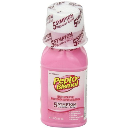 About This Item We aim to show you accurate product information. Manufacturers, suppliers and others provide what you see here, and we have not verified it. See our disclaimer The original upset stomach and diarrhea reliever. Relieve heartburn, indigestion, nausea, upset stomach, and diarrhea with the smooth original liquid formula that comes with just a hint of a fresh wintergreen taste.Use as directed. Bismuth Subsalicylate. Upset Stomach Reliever/Antidiarrheal.Whether youâ??re looking for relief in liquid, chewables, or caplets Pepto-Bismol has you covered. With five-symptom digestive relief, itâ??s no wonder that weâ??re the No. 1 pharmacist-recommended brand for relief of upset stomach due to overindulgence in food and drink.*Get five-symptom digestive relief from:And, when little tummies get upset, turn to Children's Pepto Antacid Chewable Tablets for help. When belly woes hit, Pepto-Bismol has you covered.* Based on Pharmacy Times OTC survey 2013 (Upset Stomach Remedies Category). Pepto Bismol Liquid for Nausea, Heartburn, Indigestion, Upset Stomach, and Diarrhea Relief, Original Flavor 4 oz: 5 SYMPTOM Digestive Relief: Nausea, Heartburn, Indigestion, Upset Stomach, Diarrhea (Packaging may vary) The #1 Pharmacist Recommended Brand for Upset Stomachs (Based on Pharmacy Times 2018 Survey-upset stomach remedies category) Pepto's formula now has improved coating to calm and soothe your stomach Bismuth Subsalicylate Whether you're looking for an upset stomach medicine or nausea help, wondering what to do for indigestion or heartburn relief, or trying to find what's good for diarrhea, Pepto provides fast relief