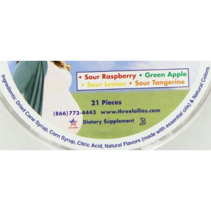 About This Item We aim to show you accurate product information. Manufacturers, suppliers and others provide what you see here, and we have not verified it. See our disclaimer The Natural Way to Ease Morning Sickness!NaturalDrug-FreeDoctor RecommendedSour Raspberry, Green Apple, Sour Lemon & Sour Tangerine21 Pieces Free Of Drugs Disclaimer These statements have not been evaluated by the FDA. These products are not intended to diagnose, treat, cure, or prevent any disease. Three Lollies Preggie Pop Drops Sour Raspberry Sour Apple Sour Lemon Sour Tangerine - 21 Pieces