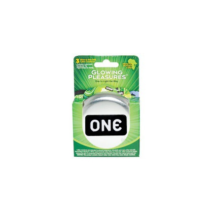 About This Item We aim to show you accurate product information. Manufacturers, suppliers and others provide what you see here, and we have not verified it. See our disclaimer ONE® Glowing Pleasures Condom 3pk - ONE® to light the way. Expose C11:G11to light for 30 seconds for up to half an hour of glow-in-the-dark fun. Glowing Pleasures⢠condoms are made using non-toxic phosphorous pigment layered between thin layers of latex. Includes carrying case that can hold up to four condoms; Straight-walled shape; Premium silicone lubricant; Reservoir tip