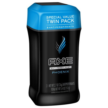 About This Item We aim to show you accurate product information. Manufacturers, suppliers and others provide what you see here, and we have not verified it. See our disclaimer AXE Antiperspirant Deodorant Stick for Men, Phoenix, 2.7 oz Twin Pack is part of the Phoenix male grooming range from AXE. This value pack offers two antiperspirant sticks so you always have an extra one whether for when you run out of yours or to have an extra for your gym bag and one at home. Phoenix is a classic, fruity fragrance featuring lavender, geranium and citrus. Its earthly composition and subtle blend of wood and fruit refresh the senses. AXE Antiperspirant Deodorant Stick for men, Phoenix 2.7 oz provides 24-hour antiperspirant protection to keep you confidently fresh and dry for longer. Apply a few strokes to washed and dried armpits. Wait a minute, get dressed and go. Boost your scent with AXE Body Spray for men 4 oz, get clean and fresh with AXE Body Wash for men 16 fl. Oz, and complete the range with AXE 2-in-1 Shampoo and Conditioner for men 12 fl oz – all available in Phoenix. An AXE Deodorant Stick for Men 3oz is also available in Phoenix. And check out our other AXE Antiperspirant Deodorant Sticks for men scents like Apollo, Essence, Dark Temptation, and Anarchy. AXE Antiperspirant Deodorant Stick Phoenix is also available in a Twin Pack so you can keep one at home and have on with you on the go. FIND YOUR MAGIC with AXE Antiperspirant Deodorant Stick for men Phoenix 2.7 oz Twin Pack from AXE Grooming For Men. AXE Antiperspirant Deodorant Stick for Men Phoenix 2.7 oz, Twin Pack AXE Antiperspirant Deodorant Stick for Men, Phoenix, 2.7 oz provides 24-hour odor and wetness protection to keep you confidently fresh and dry for longer A classic, fruity fragrance featuring lavender, geranium and citrus Its earthly composition and subtle blend of wood and fruit refresh the senses Keeps you fresh and dry for 24 hours AXE Antiperspirant Deodorant Stick for Men Twin Pack is part of the AXE male grooming range Goes well with AXE Phoenix Body Wash 16 fl oz, AXE Body Spray for Men 4 oz, and AXE Phoenix 2-in-1 Shampoo and Conditioner 12 fl oz