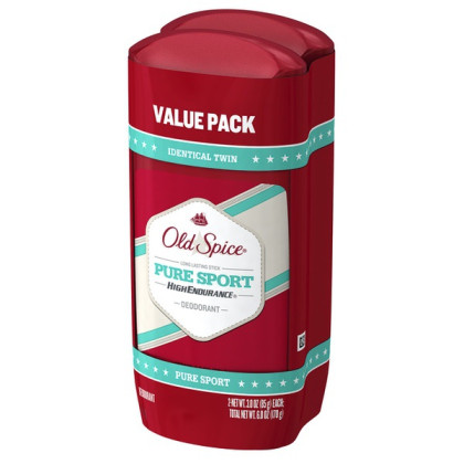 About This Item We aim to show you accurate product information. Manufacturers, suppliers and others provide what you see here, and we have not verified it. See our disclaimer Old Spice Men's Deodorant reduces underarm odor for 24 hours. Turn the base to raise the deodorant and wipe armpits for long-lasting freshness. What's better than smelling like a man? I'm so glad you asked, because the only thing better than smelling like a man is smelling like a man who knows how to smell manly. I'm talking about the sophisticated scent of a man who uses Old Spice. Pure Sport is the crisp, clean scent of achievement. Old Spice Men's Deodorant overpowers even the burliest stink with overwhelming good-smellingness. So get yourself some High Endurance collection and prepare for success, because it will find you no matter what. Old Spice High Endurance Pure Sport Deodorant for Men 3 oz Twin: Old Spice Men's Deodorant overpowers stink with good-smellingness So easy to use you might accidentally put it on and only later realize your man-nificence High Endurance collection boosts your man-smell and prepares you for success Provides 24-hour odor protection, in case you need to climb a mountain, fight off a bear, and ride an elevator all in the same day Pure Sport scent laughs at lesser sports scents from high atop a lemon-lime tree that was actually quite difficult to climb