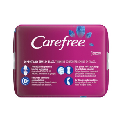 About This Item We aim to show you accurate product information. Manufacturers, suppliers and others provide what you see here, and we have not verified it. See our disclaimer CAREFREE® ACTI-FRESH® Twist Resist Body Shaped Pantiliners Unscented Thin - 60 Count liners feature Twist Resist™ design that minimizes bunching and twisting, to comfortably stay in place, so you don’t have to. Quilted design that minimizes bunching and twisting for flexible protection that adjusts to your unique body The absorbent Qwik-Dry™ core locks in fluids faster and keeps you fresher than before 8-hour odor control system provides long-lasting freshness to give you an extra boost of confidence when you need it