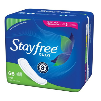 Stayfree Maxi Pads (without Wings), Unscented, Super, 66 Ct