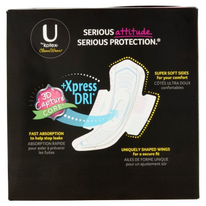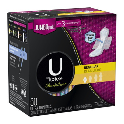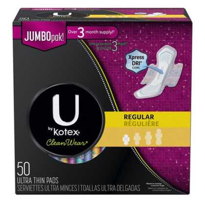 U by Kotex CleanWear Ultra Thin Pads with Wings, Regular, Unscented, 50 Ct