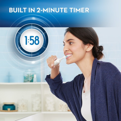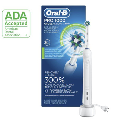 About This Item We aim to show you accurate product information. Manufacturers, suppliers and others provide what you see here, and we have not verified it. See our disclaimer The White Oral-B 1000 rechargeable toothbrush provides a clinically proven superior clean vs. a regular manual toothbrush. The professionally inspired design of the CrossAction brush head surrounds each tooth with bristles angled at 16 degrees, and 3D cleaning action oscillates, rotates, and pulsates to break up and remove up to 300% more plaque along the gumline than a regular manual toothbrush. The pressure sensor stops pulsations if you brush too hard to prevent harmful over-brushing and there is 1 mode, plus an in-handle timer to help you brush for a dentist-recommended 2 minutes. Trust in the precision engineering of Braun and the dental expertise of Oral-B, the #1 brand used and recommended by dentists worldwide. 100% Satisfaction Guaranteed. Manufacturer Contact Information Customer support : (800) 566-7252 or (800) 566-ORALB Oral-B 1000 CrossAction Electric Toothbrush, White, Powered by Braun: Removes 300% more plaque along the gum line than a regular manual toothbrush Senses when you brush too hard with pressure sensor In-handle timer pulses every 30 seconds to let you know when to switch areas of the mouth Rechargeable battery toothbrush with 1 mode - Daily Clean Compatible with Oral-B brush heads for every oral care need: CrossAction, FlossAction, Precision Clean, 3D White, Sensitive Gum Care, Deep Sweep, Dual Clean Oral-B is the #1 dentist-recommended toothbrush brand worldwide Oral-B recommends brushing with Crest Toothpaste for optimal results