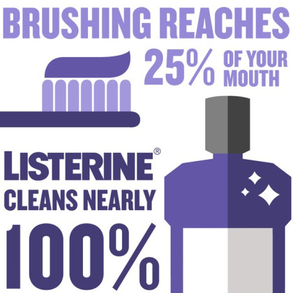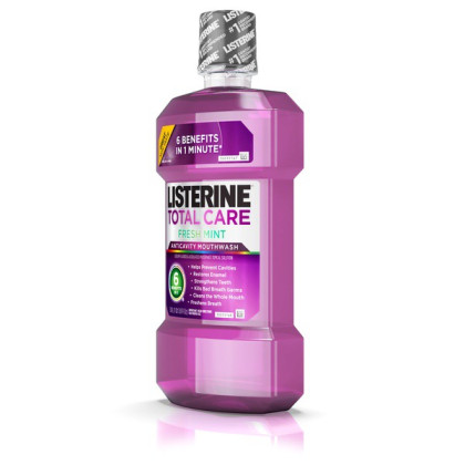 About This Item We aim to show you accurate product information. Manufacturers, suppliers and others provide what you see here, and we have not verified it. See our disclaimer Give your mouth complete care with Listerine Total Care Anticavity Mouthwash. This mouthwash provides six benefits in one and up to seven times the fluoride uptake versus Act,* and helps make your teeth 50 percent stronger than just brushing alone**. The fluoride-rich formula helps prevent cavities, restores enamel, and strengthens your teeth to improve oral health. Use this mouthwash to freshen breath, kill germs that cause bad breath, and clean your whole mouth. With approximately 7 weeks of supply, this 1-L bottle of mouthwash featuring fresh mint flavor gives your mouth a clean feeling you can taste.*In laboratory tests compared to Act Anticavity Kids Fluoride Rinse, Act Total Care Anticavity Fluoride Rinse, Act Total Care Anticavity Fluoride Rinse-alcohol free, Act Total Care Anticavity Mouthwash, Act Restoring Mouthwash.**In laboratory studies.Third party trademarks used herein are trademarks of their respective owners. 1-l of anticavity mouthwash providing 6 benefits in 1 along with a fresh mint flavor Formula helps prevent cavities, restore enamel, and strengthen your teeth to improve oral health Mouthwash freshens breath, kills germs that cause bad breath, and cleans your whole mouth Anticavity mouthwash helps make teeth 50% stronger than brushing alone, in laboratory studies Fluoride-rich formula features a refreshing fresh mint flavor for a clean feeling you can taste Cleans and helps prevent tooth decay while providing cavity protection Mouthwash provides continuous and effective oral care when used regularly The 1-l bottle provides approximately 7 weeks of supply