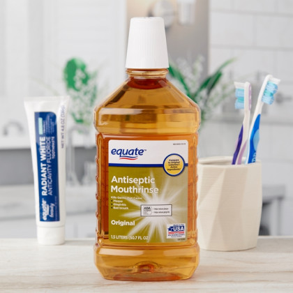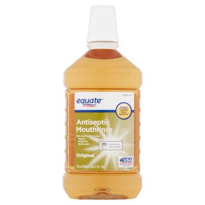 About This Item We aim to show you accurate product information. Manufacturers, suppliers and others provide what you see here, and we have not verified it. See our disclaimer Equate Original Antiseptic Mouthrinse, 50.7 fl oz Antiseptic Mouthrinse Kills germs that cause plaque, gingivitis, and bad breath 50.7fl oz bottle