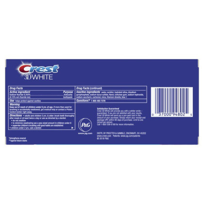 About This Item We aim to show you accurate product information. Manufacturers, suppliers and others provide what you see here, and we have not verified it. See our disclaimer Brighten your smile with Crest 3D White Arctic Fresh Whitening Toothpaste. It whitens your teeth by removing up to 80% of surface stains and protects against future stains. 3D White fluoride toothpaste also strengthens your tooth enamel and helps protect against cavities. Crest 3D White Arctic Fresh Whitening Toothpaste, Icy Cool Mint, 4.8 oz (Pack of 2): Whitens teeth by removing up to 80% of surface stains Protects teeth against future stains Strengthens teeth and safe on tooth enamel Fluoride toothpaste protects against cavities Icy Cool Mint Flavor
