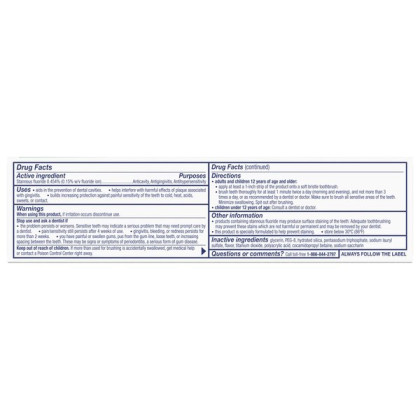 About This Item We aim to show you accurate product information. Manufacturers, suppliers and others provide what you see here, and we have not verified it. See our disclaimer Sensodyne Complete Protection enamel toothpaste is a fluoride toothpaste that provides lasting sensitivity relief and protection* by building a protective layer over the sensitive areas of your teeth. It strengthens and re-hardens enamel, protects against plaque, helps maintain healthy gums, helps restore your teeth's natural whiteness, and leaves your breath feeling fresh, giving you 7 specially designed benefits in 1 complete sensitive toothpaste.* Sensodyne toothpaste is the #1 dentist recommended toothpaste brand for sensitive teeth. *with twice daily brushing Sensodyne Complete Protection toothpaste for sensitive teeth is proven to help relieve tooth sensitivity pain Strengthens and re-hardens enamel Sensodyne sensitive toothpaste is the number 1 dentist recommended toothpaste brand for sensitive teeth Sensodyne Complete Protection cavity protection toothpaste offers an extra fresh taste and whitening Best results with twice daily brushing